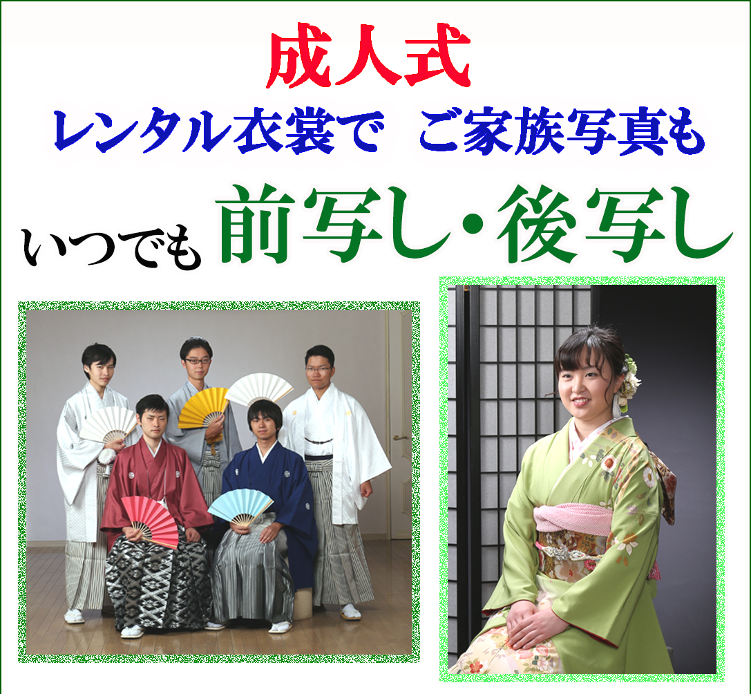 ●他にお出かけ貸衣裳コースや写真のみコースもございます。ご予約の時衣裳の下見にご来店下さい。 |
